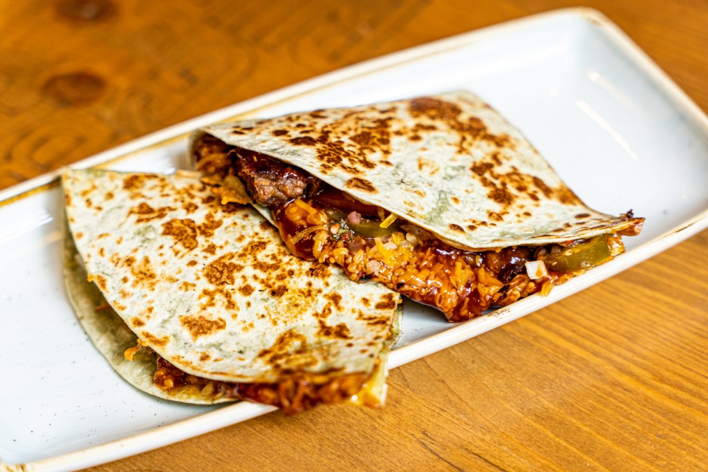 tépett sertés, jalapeno, hagyma, avokádós tejföl salsaval, chimichurri (nem csípős)