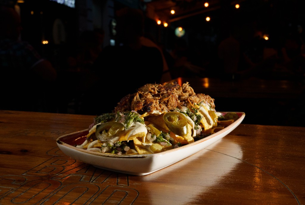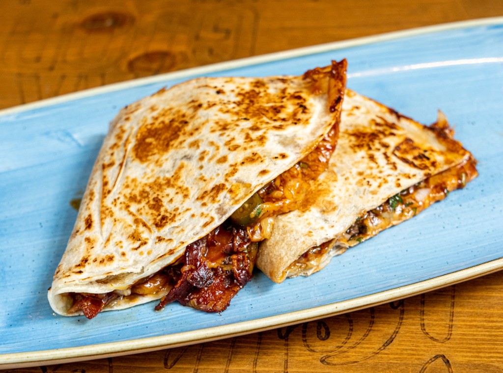 tépett sertés, jalapeno, hagyma, avokádós tejföl salsaval, chimichurri (nem csípős)